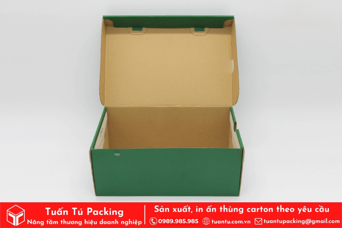 Lựa chọn in hộp giấy đựng giày chất lượng chính là cách để vừa bảo vệ sản phẩm, vừa tạo ấn tượng lâu dài trong mắt khách hàng. Với nhiều năm kinh nghiệm, đội ngũ thiết kế sáng tạo và công nghệ in hiện đại, Tuấn Tú cam kết mang đến cho bạn giải pháp hộp đựng giày đẹp – bền – tiết kiệm. Liên hệ ngay với Tuấn Tú để được tư vấn miễn phí và nhận báo giá tốt nhất hôm nay!