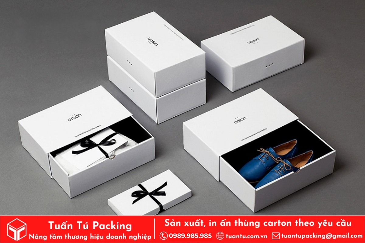 In hộp giấy đựng giày dép ngày nay không chỉ là khâu đóng gói sản phẩm mà còn là chiến lược marketing thông minh giúp các shop thời trang và doanh nghiệp nâng tầm thương hiệu. Một chiếc hộp được thiết kế đẹp mắt, in ấn chỉn chu sẽ tạo ấn tượng mạnh mẽ, khiến khách hàng dễ dàng ghi nhớ và đánh giá cao sản phẩm. Vậy làm thế nào để chọn được chỗ in hộp giấy vừa đẹp, vừa bền, lại tiết kiệm chi phí? Hãy cùng Tuấn Tú tìm hiểu ngay trong bài viết dưới đây.
