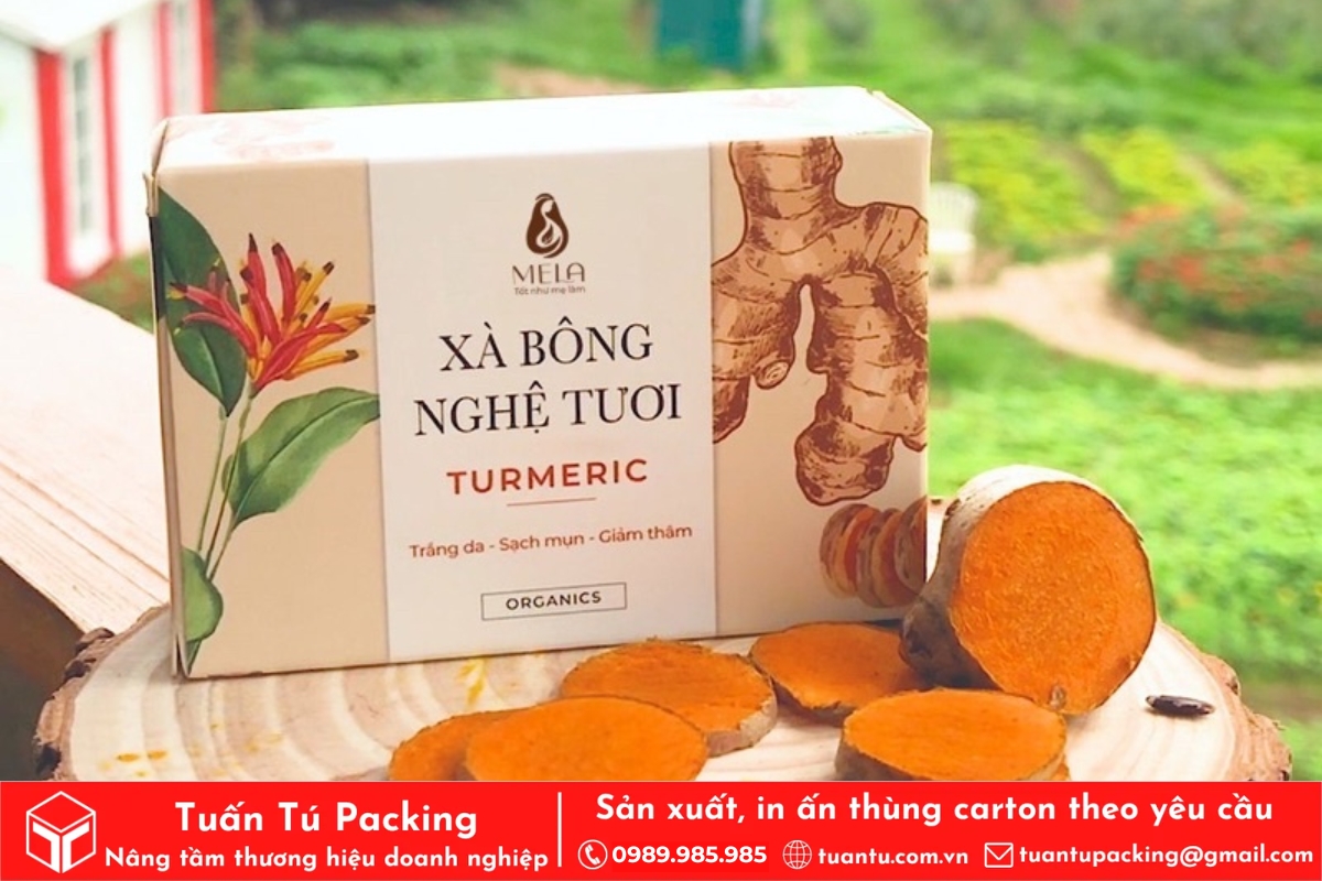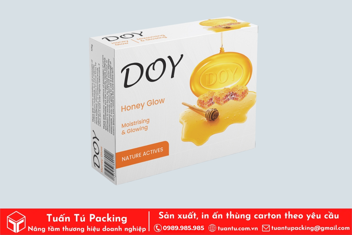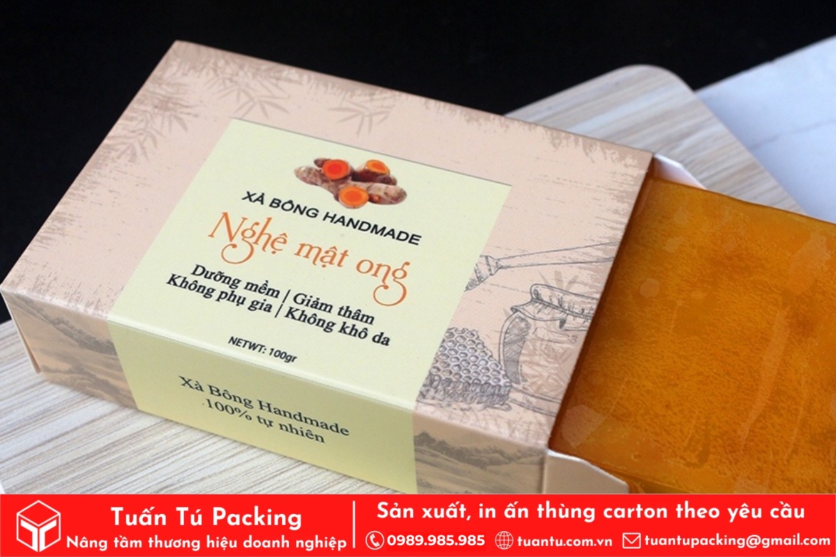 Hộp giấy nắp mở đựng xà bông nghệ, in thông tin rõ ràng đẹp mắt
