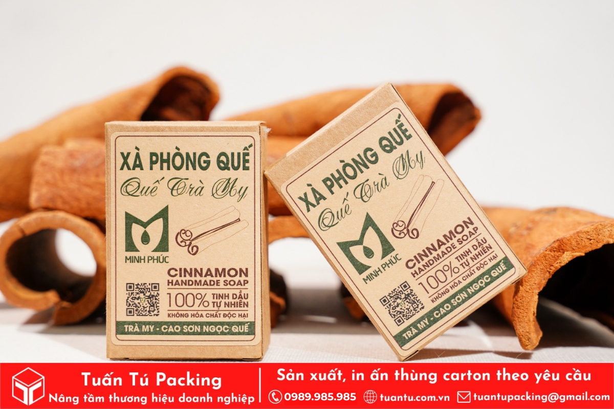 Hộp xà bông mùi quế, sử dụng giấy kraft vintage ấm áp