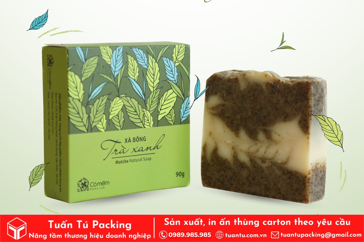 Hộp giấy đựng xà phòng hương trà xanh, màu xanh lá tươi mát