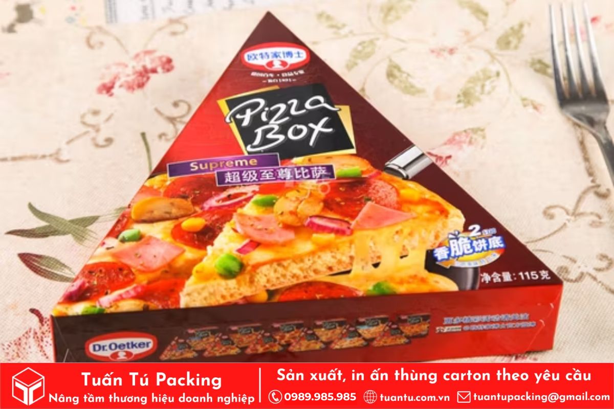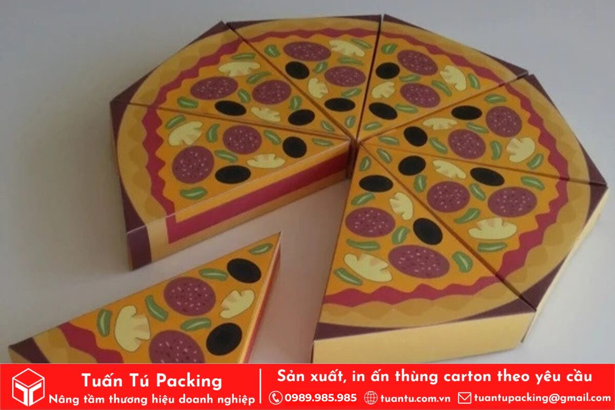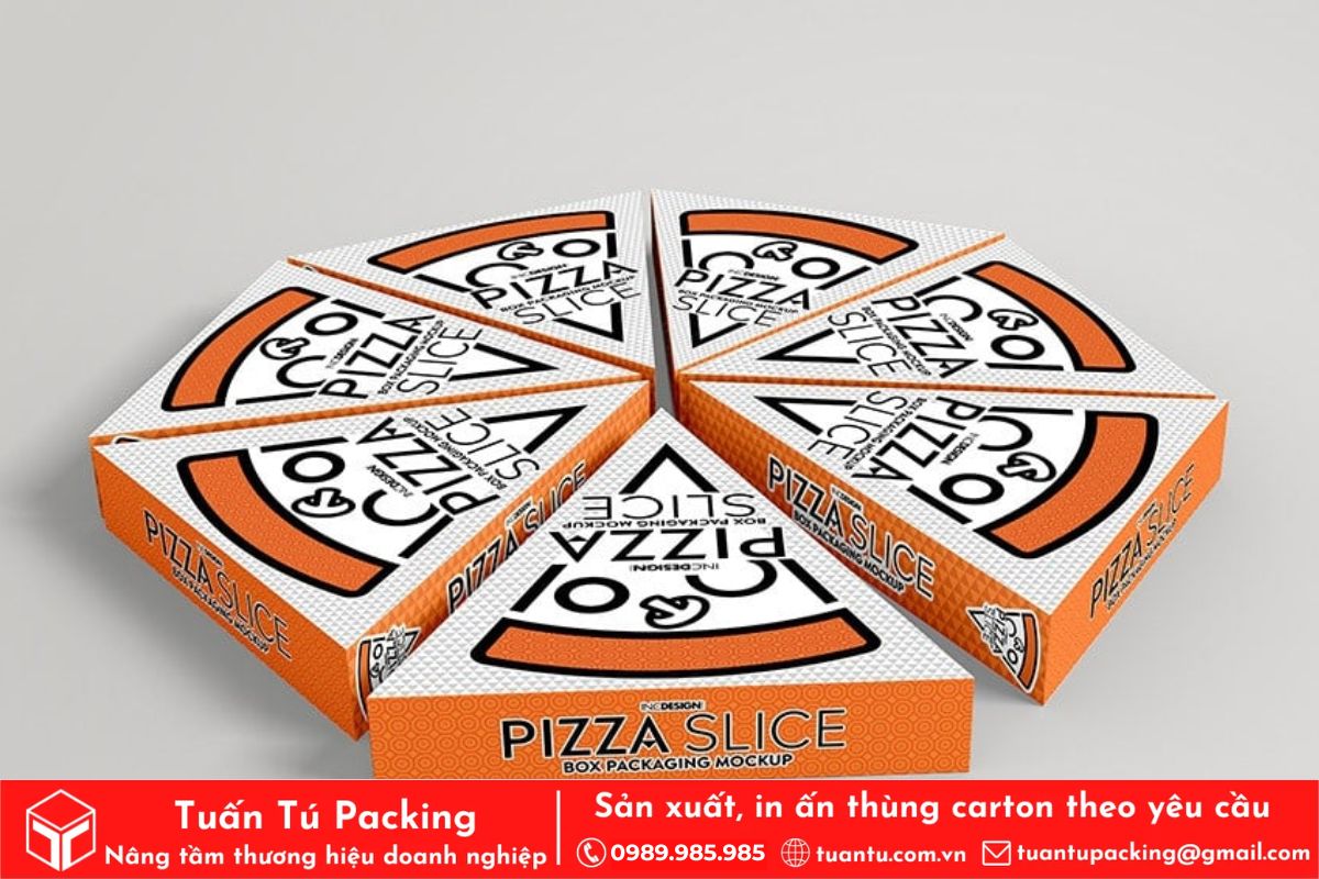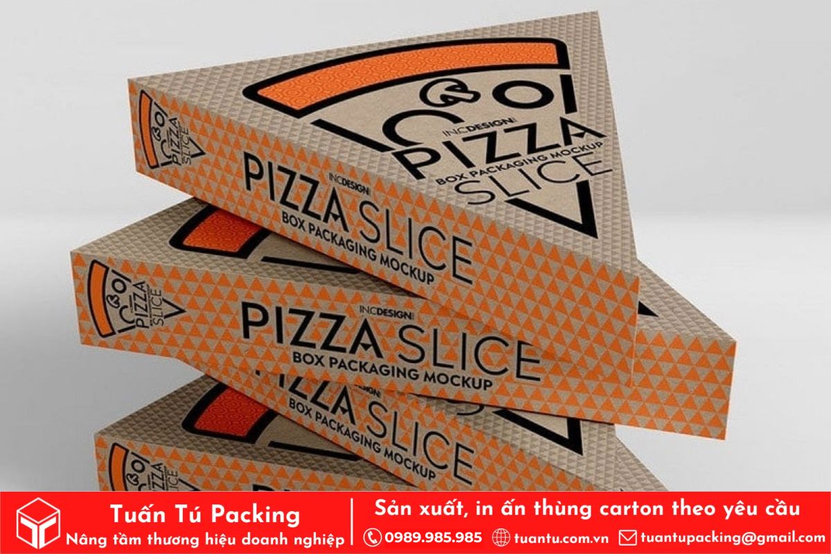 - Hộp tam giác: Dành cho từng miếng pizza, thích hợp với mô hình bán lẻ.