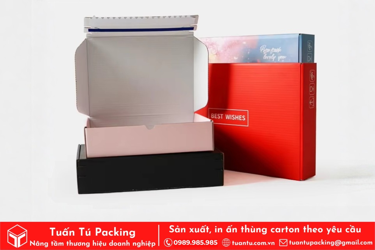 Carton sóng bồi E (Âm dương/Nắp gập) | 33.000 – 53.000 VNĐ/Hộp | 26.000 – 36.000 VNĐ/Hộp | 23.000 – 28.000 VNĐ/Hộp | Độ cứng cáp cao, phù hợp cho combo quà nặng. |
