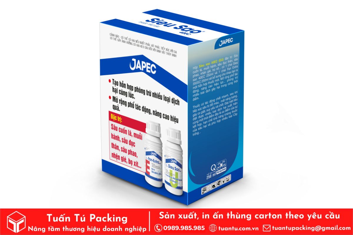 In hộp thuốc trừ sâu là giải pháp tối ưu giúp bảo vệ sản phẩm, nâng cao giá trị thương hiệu và tạo ấn tượng chuyên nghiệp trên thị trường. Tuấn Tú ứng dụng công nghệ in hiện đại cùng quy trình sản xuất tiêu chuẩn, cam kết mang đến bao bì chất lượng, bền đẹp và hiệu quả kinh doanh cao. Liên hệ ngay với Tuấn Tú để được tư vấn chi tiết và nhận báo giá ưu đãi.