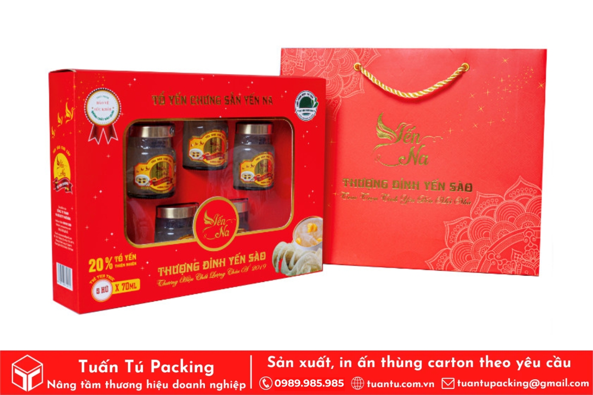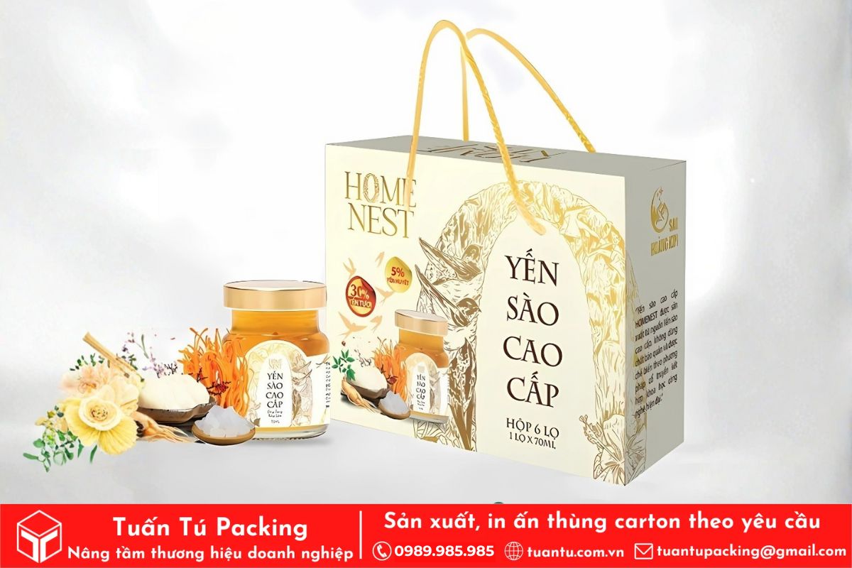 Bạn muốn sản phẩm yến sào của mình không chỉ chất lượng bên trong mà còn thật ấn tượng bên ngoài? Dịch vụ in hộp yến sào theo yêu cầu tại Tuấn Tú sẽ giúp bạn sở hữu những mẫu bao bì sang trọng, tinh tế và chuẩn nhận diện thương hiệu. Với mức giá tối ưu, thiết kế linh hoạt và cam kết giao hàng nhanh chóng, chúng tôi mang đến giải pháp trọn vẹn để sản phẩm của bạn luôn nổi bật và tạo dấu ấn mạnh mẽ trong mắt khách hàng.